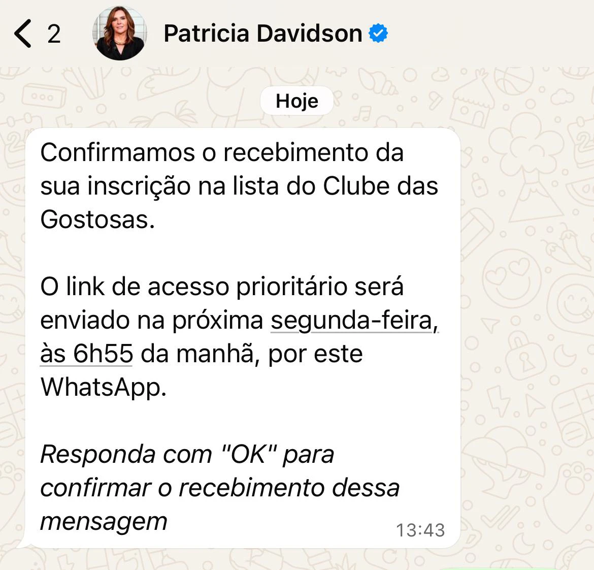 ✅ Confirme o recebimento da mensagem para garantir seus bônus exclusivos: