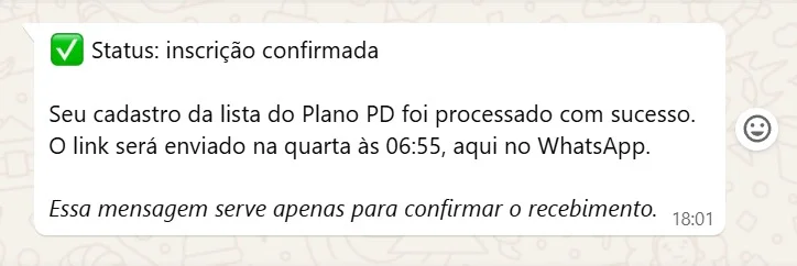 ✅ Confirme o recebimento da mensagem para garantir seus bônus exclusivos:
