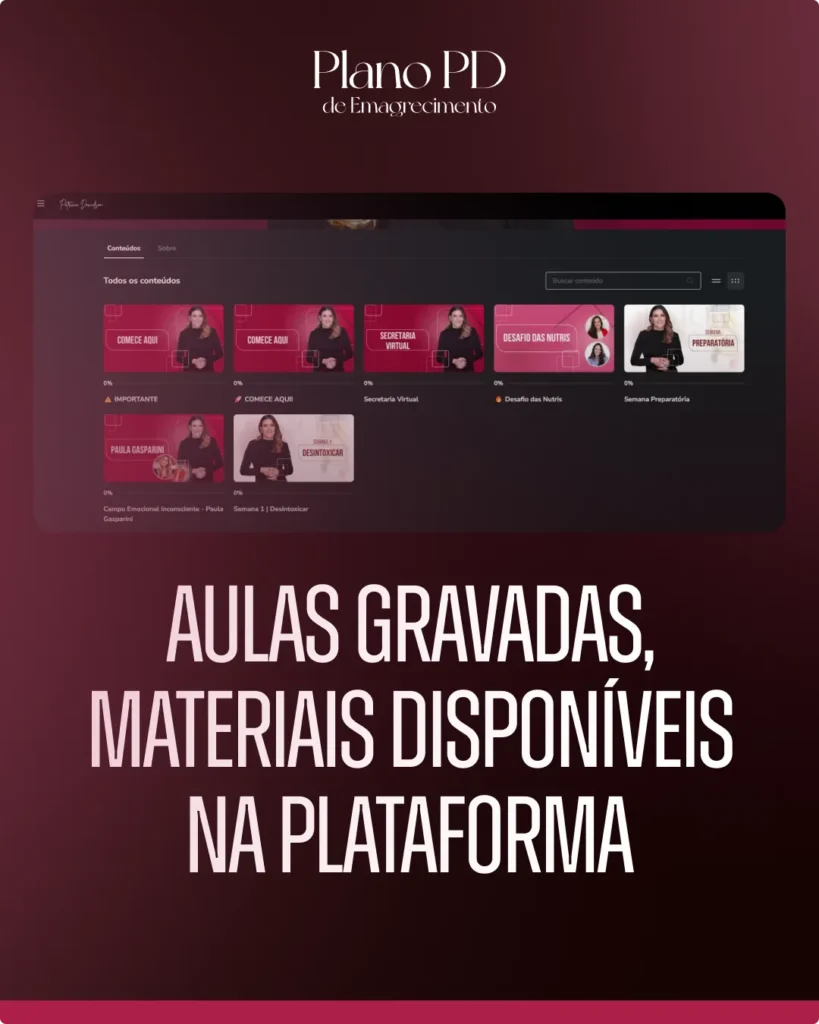 Este não é mais um programa genérico. É um sistema completo de 8 semanas com acompanhamento profissional diário, encontros ao vivo comigo e uma equipe multidisciplinar focada em uma coisa: fazer você emagrecer de verdade e para sempre.